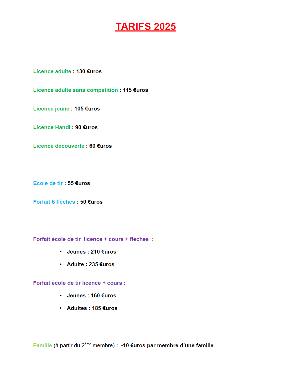 - D'un certificat médical (autorisation de pratiquer le tir à l'arc)